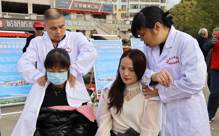 活動現(xiàn)場,志愿者為群眾提供按摩服務