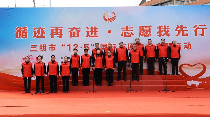 活動現(xiàn)場,文藝志愿者合唱三明市志愿者之歌《一起飛翔》