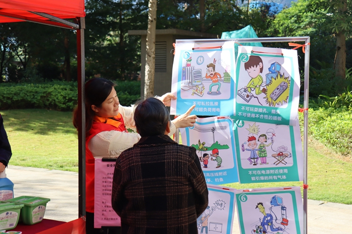 在舞臺的另一邊,系列志愿服務(wù)活動也是同樣熱鬧非凡,平安建設(shè)、普法宣傳、便民義診、安全用電知識小游戲、法律咨詢、反詐知識有獎問答活動、義剪活動……一個個排列整齊的小攤位,將各種志愿服務(wù)匯聚起來,前來參觀體驗的群眾絡(luò)繹不絕。