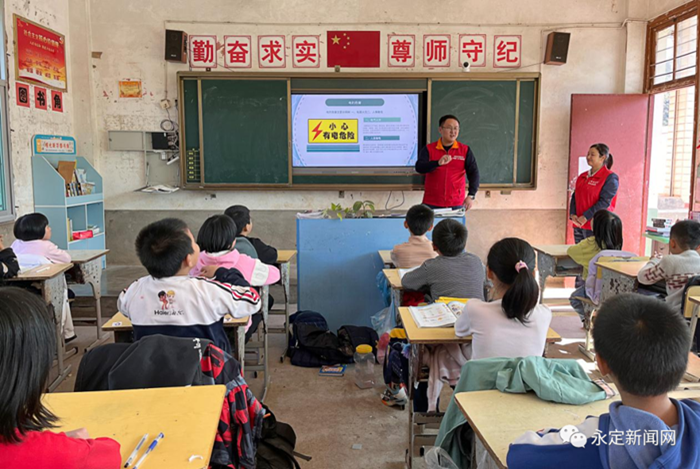 志愿者曾德鍇化身“電力教師”為學(xué)生上課。永定新聞網(wǎng) 供圖