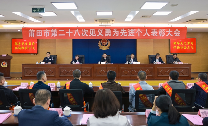 莆田市第二十八次見義勇為先進(jìn)個人表彰大會現(xiàn)場。莆田市公安局供圖