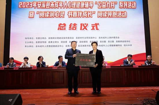 近日,2023年安溪縣未成年人心理健康輔導“公益九月”暨“閱讀潤心靈 書香伴成長”閱讀領(lǐng)跑活動總結(jié)儀式在恒興中學舉行。