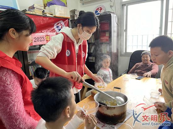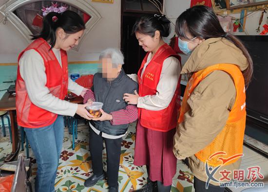志愿者為老人送去湯圓(三鄉(xiāng)社區(qū)新時(shí)代文明實(shí)踐站 供圖)
