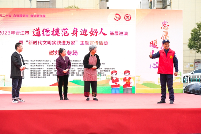 文明風(fēng)12月28日訊 12月27日下午,晉江市2023年度道德模范身邊好人基層巡演暨“新時代文明實踐進(jìn)萬家”主題宣傳活動在晉江市磁灶鎮(zhèn)延澤社區(qū)新時代文明實踐法治廣場舉辦。