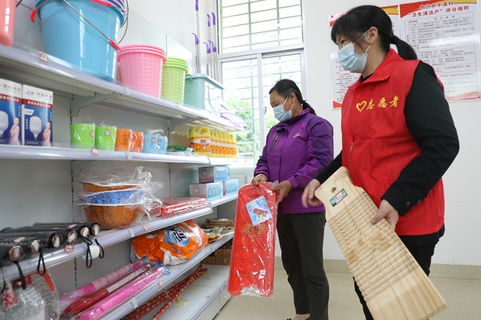 寧化縣中沙鄉(xiāng)半溪村村民正在“文明超市”挑選兌換品