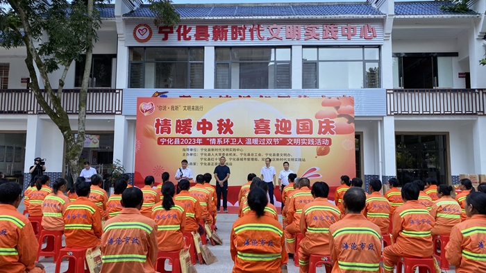 寧化縣新時代文明實踐中心、人大機(jī)關(guān)、文明辦、城市管理局、總工會等單位聯(lián)合開展“情系環(huán)衛(wèi)人 溫暖過雙節(jié)”文明實踐活動