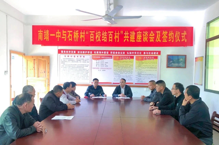 文明風(fēng)1月15日訊 為深入貫徹習(xí)近平新時(shí)代中國特色社會(huì)主義思想,學(xué)習(xí)領(lǐng)會(huì)和貫徹習(xí)近平總書記在北京育英學(xué)??疾煺{(diào)研時(shí)的重要講話精神,近日,南靖一中與南靖縣書洋鎮(zhèn)石橋村攜手開展共建活動(dòng)。南靖縣文明辦、書洋鎮(zhèn)、南靖一中等單位相關(guān)人員參加活動(dòng)。