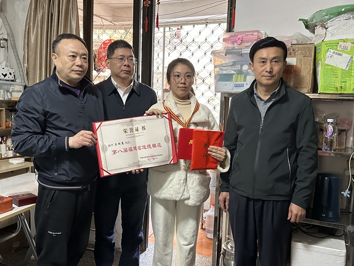 慰問(wèn)“中國(guó)好人”、福建省道德模范王林慧(臺(tái)江區(qū)委文明辦供圖)