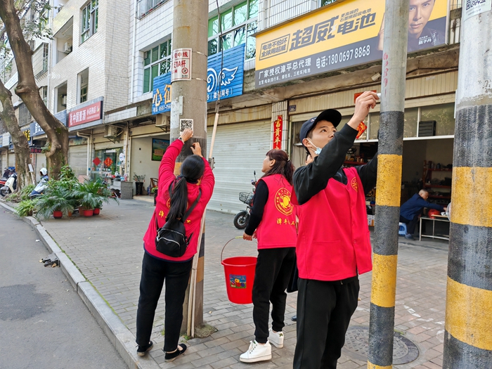 啟動儀式結束后,各級文明單位志愿者還到各自掛鉤責任路段、小區(qū)開展創(chuàng)城綜合整治活動。志愿者們拿著掃帚、夾子等工具,充分發(fā)揮不怕苦、不怕臟的精神,對占道經營、路面垃圾、樓道堆物堆料、違法小廣告、綠化帶、宣傳欄與衛(wèi)生死角等進行清理。同時,耐心地對沿街商戶、居民住戶進行宣教工作,進一步提高創(chuàng)建文明城市的支持率和滿意率。
