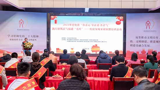 德化縣開展“存正心、守正道、養(yǎng)正氣”踐行新風(fēng)正氣福建“名片”——優(yōu)良家風(fēng)家訓(xùn)家教宣講活動。德化縣委文明辦供圖
