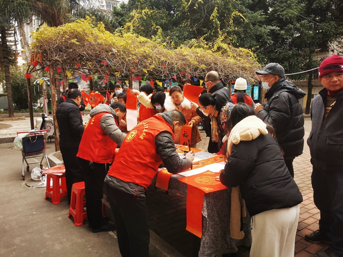為積極推行“?!蔽幕拿鲗?shí)踐和宣傳推廣活動(dòng),書法家志愿者們還現(xiàn)場(chǎng)為群眾書寫春聯(lián)、送祝福,用“?!蔽幕幐栊聲r(shí)代、暖民心。(福建高院 李國(guó)洪 鄭潔)