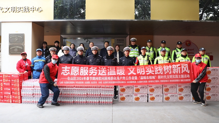 主辦方在倉(cāng)山區(qū)新時(shí)代文明實(shí)踐中心活動(dòng)廣場(chǎng)集中慰問(wèn)了環(huán)衛(wèi)工人、交警(輔警)等一線戶外工作者(倉(cāng)山區(qū)融媒體中心 供圖)