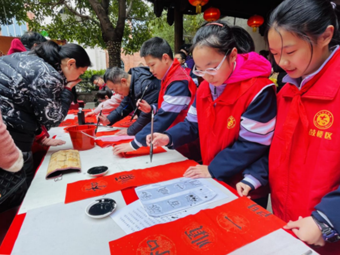 活動現(xiàn)場,為居民群眾寫春聯(lián)、送春聯(lián)(安泰街道供圖)