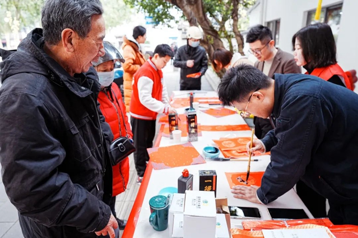 2月2日上午,來自國網(wǎng)福州供電公司書畫協(xié)會和團委的志愿者們揮毫潑墨,書寫寓意吉祥的春聯(lián),繪畫特色龍年漫畫,贈予前來參與活動的市民。自古英雄出少年,來自福州市十九中的“低碳少年”們也紛紛展示書畫“絕活”,在送祝福的同時向群眾積極宣傳低碳環(huán)??破罩R。這些春聯(lián)不僅承載著對新年的美好祝愿,也展現(xiàn)了中國傳統(tǒng)書法藝術的魅力。群眾收到一幅幅精美的書法,連連稱贊,一位聾啞群眾還用自己的方式表達了對志愿者們的感謝,他用手機點贊“黨真好,為我們服務!”