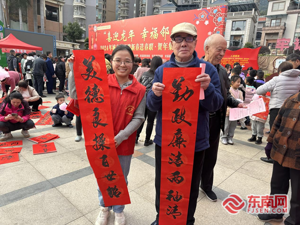“春聯(lián)是過(guò)年時(shí)所貼的紅色喜慶元素‘年紅’中一個(gè)種類(lèi),是具有中國(guó)特色的一種文學(xué)形式,是過(guò)年的重要習(xí)俗。”在安溪縣城東社區(qū)黨建文化廣場(chǎng),老同志們邊寫(xiě)春聯(lián)邊向茶鄉(xiāng)“少年家”們介紹春聯(lián)的文化內(nèi)涵?!懊康酱汗?jié)期間,我們幾個(gè)書(shū)法愛(ài)好者都組織寫(xiě)贈(zèng)春聯(lián)活動(dòng),一方面是借此機(jī)會(huì)對(duì)傳統(tǒng)文化的傳承和發(fā)揚(yáng),另一方面也可以發(fā)揮離退休干部的余熱,不忘為人民服務(wù)的本色和初心。”洪愛(ài)讀老同志說(shuō)。