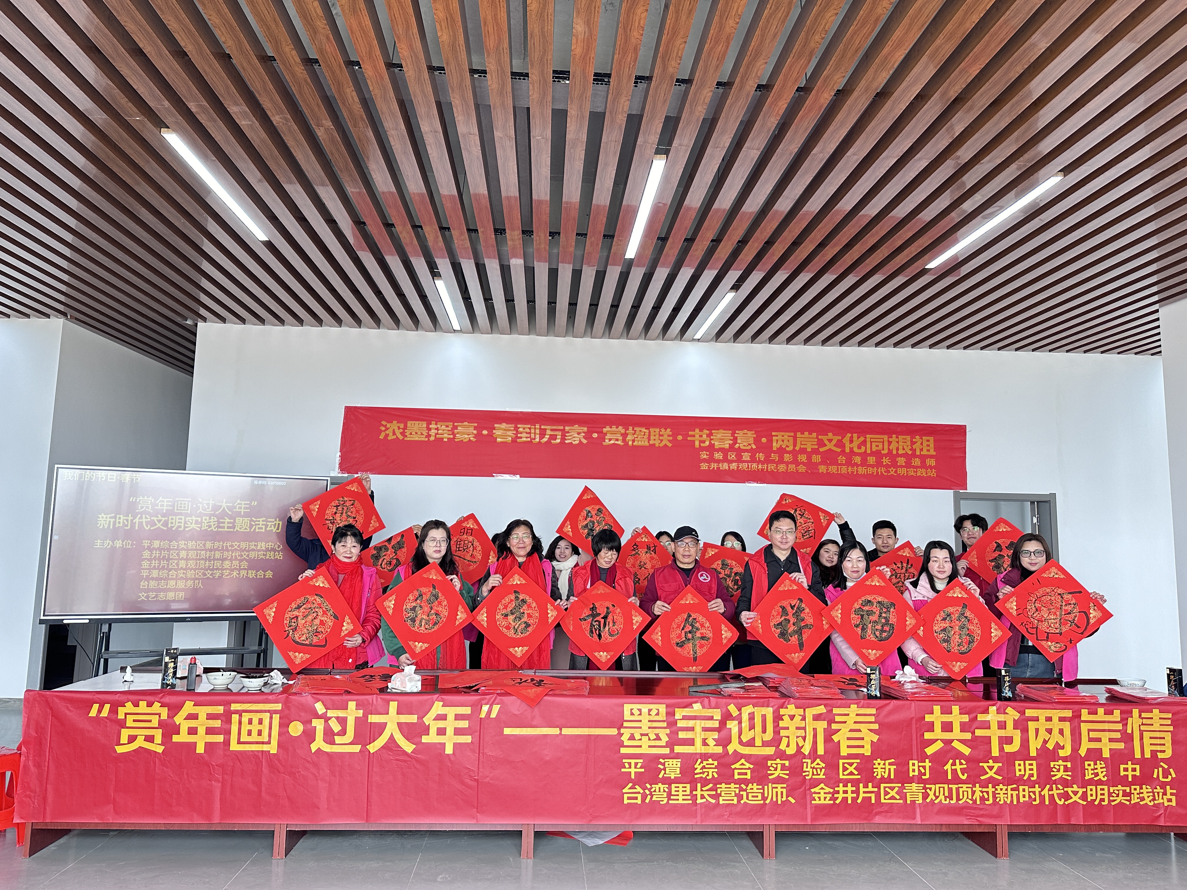 1月29日,實驗區(qū)新時代文明實踐中心聯(lián)合金井片區(qū)青觀頂村新時代文明實踐站、金井片區(qū)青觀頂村民委員會舉辦“賞年畫·過大年”新時代文明實踐主題活動。同日,實驗區(qū)婦聯(lián)在海壇片區(qū)東門社區(qū)組織開展“海峽同心翰墨傳情 兩岸同源百福迎春”主題活動,邀請兩岸書法愛好者為居民們寫春聯(lián)、送福字。同日,實驗區(qū)總工會開展“迎新春 送春聯(lián)”活動,為環(huán)衛(wèi)工人們送上福字和春聯(lián)。