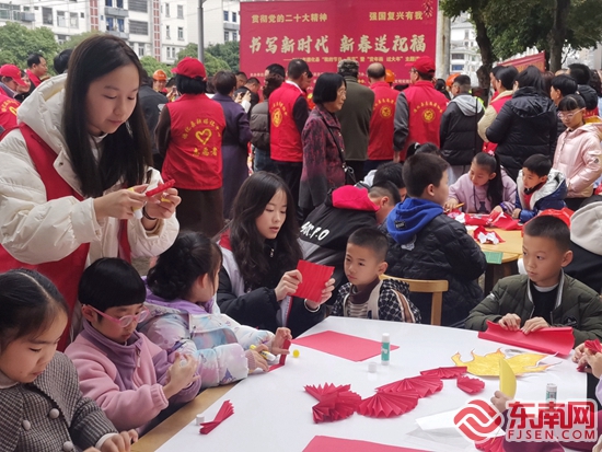 除了年畫展示,現(xiàn)場還有寫春聯(lián)、趣味套圈、剪刻紙迎新春、現(xiàn)場慰問、愛心理療等活動,現(xiàn)場氛圍其樂融融。(德化文明網(wǎng))