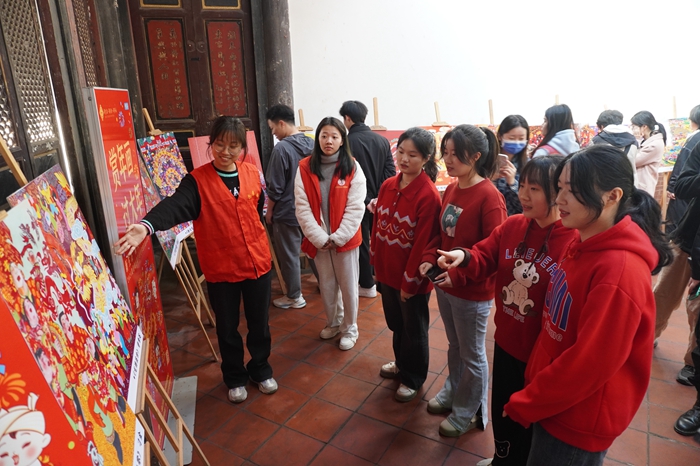 志愿者向居民介紹年畫作品 涵江區(qū)委文明辦 供圖