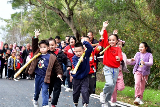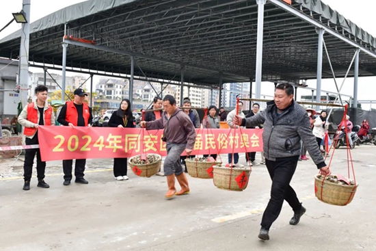 2月8日,“廈門年·同安味”2024同安區(qū)首屆民俗“村奧會”在田洋村正式啟動?;顒蝇F(xiàn)場,啃甘蔗、甘蔗活力跑等趣味比賽,如火如荼地進行著——一人一節(jié)甘蔗,比比誰吃得快;兩人背靠背夾住甘蔗,看看哪一組先跑足30米;四人一隊接力扛甘蔗,用時最短的隊伍獲勝……活動把田洋村“一村一品”甘蔗玩出花樣來。