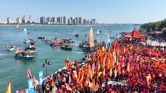 在海上,船只來往穿梭,旌旗迎風招展,這里以一場極具閩南韻味的“海上廟會”恭迎“王爺”上岸,祈愿國泰民安、風調(diào)雨順。