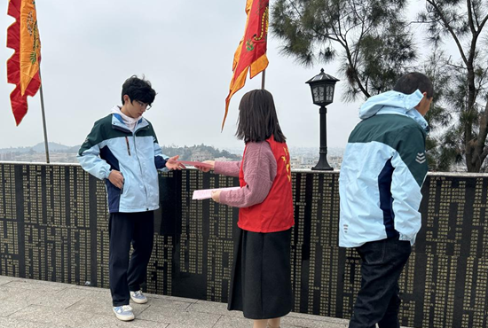 志愿者向游客分發(fā)文明旅游宣傳單 惠安縣委文明辦供圖