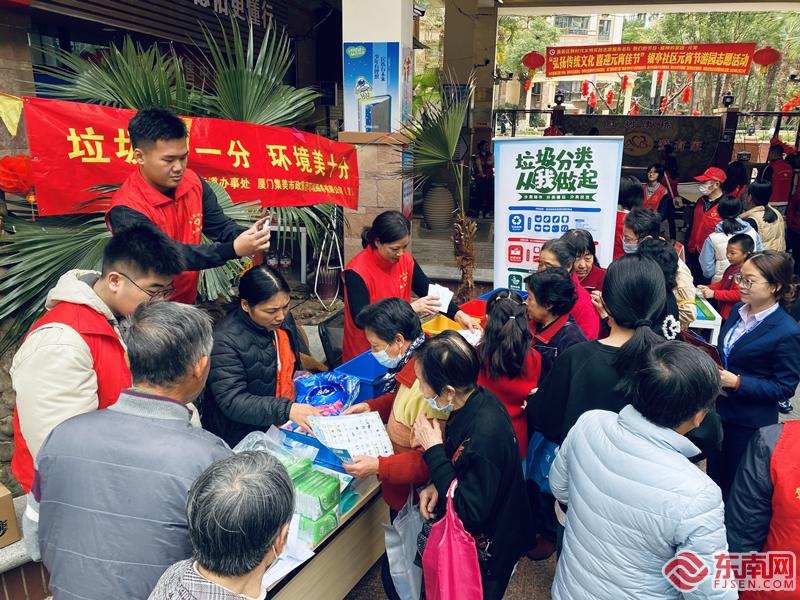 向居民發(fā)放福袋,宣傳移風易俗(集美街道新時代文明實踐所供圖)