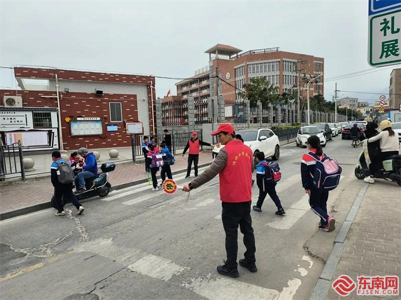 “同學(xué)們,請排好隊跟上走,注意安全?!薄捌匠3俗ν熊嚒㈦妱榆?,要正確佩戴安全頭盔、規(guī)范使用安全帶?!薄?月26日,集美區(qū)上頭亭社區(qū)新時代文明實踐站志愿者組成“護學(xué)崗”隊伍,在灌南小學(xué)周邊維持交通秩序,宣傳交通安全知識,守護孩子們的上下學(xué)路。