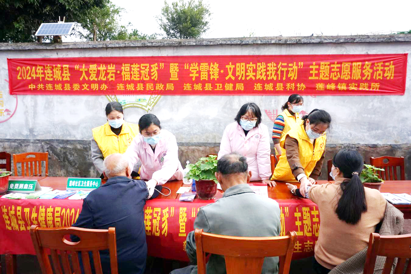 連城縣衛(wèi)健局醫(yī)護志愿者為老人提供量血壓、測血糖等健康體檢服務,逐一為老人們測量血糖,提醒老人平時要加強鍛煉,注意健康飲食,進一步提升老年人對自身健康的認知,提高大家的保健意識。