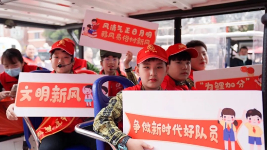 “快板表演內(nèi)容是由老師和孩子們自編自創(chuàng)的,通過歡快的表演,向廣大群眾宣傳移風易俗,寓教于樂,有助于提高群眾的參與度和接受度?!滨幊菂^(qū)委文明辦相關負責人介紹,活動采取“巡回+定點”的方式,由巡游車輛在古城內(nèi)巡回宣傳,并在人流密集場所設置宣傳點,引導群眾摒棄陳規(guī)陋習,樹立文明新風尚。