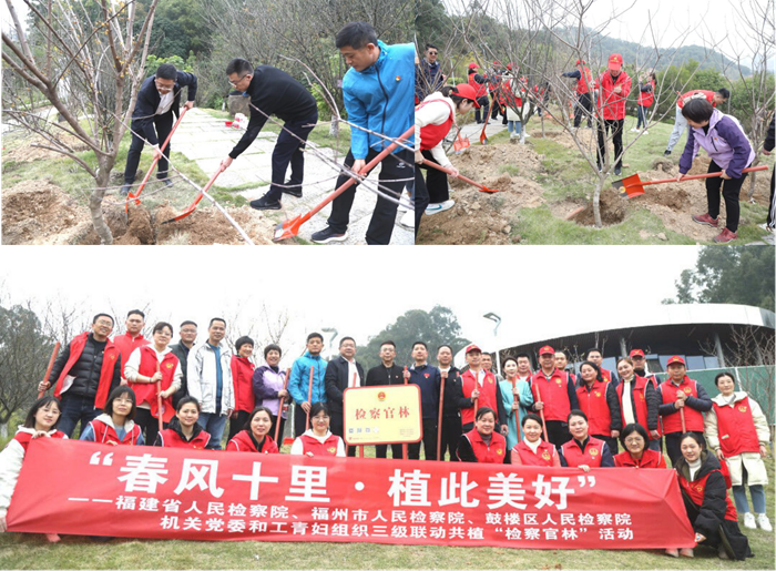 守護(hù)和美化生態(tài)環(huán)境是檢察機(jī)關(guān)的職責(zé)所系,此次三級院機(jī)關(guān)黨委和工青婦組織聯(lián)動(dòng)植樹活動(dòng),豐富了黨建共聯(lián)共建載體,進(jìn)一步強(qiáng)化“黨建引領(lǐng)、工青婦融合”的意識和氛圍。下一步,檢察機(jī)關(guān)將立足檢察職能,不斷踐行“綠水青山就是金山銀山”的生態(tài)文明理念,從“檢察官林”出發(fā),牢記林業(yè)保護(hù)的法治使命,以“檢察藍(lán)”守護(hù)“生態(tài)綠”。(福建省人民檢察院 福州市人民檢察院 鼓樓區(qū)人民檢察院)
