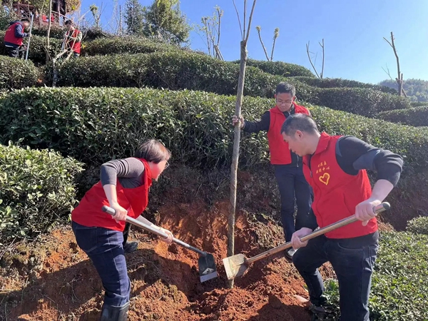 在西坪鎮(zhèn)龍地村瓦格侖附近的山場,西坪鎮(zhèn)聯(lián)合縣衛(wèi)健局、縣文體旅局、縣疾病預(yù)防控制中心等 ,開展“守護(hù)發(fā)源地 植綠核心區(qū)”義務(wù)植樹活動(dòng)?,F(xiàn)場干部職工們有序地忙活起來,不一會(huì)兒,櫻花、紫玉蘭、黃花風(fēng)鈴木等品種共100多株新植的苗木迎風(fēng)挺立,為茶園添上一抹新綠。
