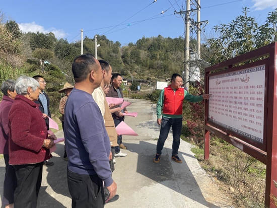 志愿者帶領(lǐng)村民重溫學(xué)習(xí)“村規(guī)民約”