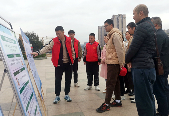 志愿者為群眾講解生活用水處理流程