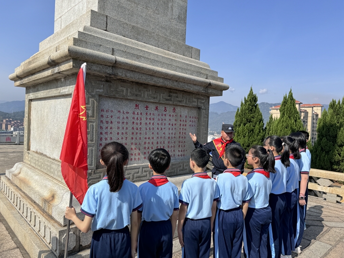 活動現(xiàn)場,華安縣退役軍人代表陳建中宣講了救火女英雄楊梅英的事跡。在陳建中富有感染力的宣講中,大家深刻了解楊梅英帶病救火,從熊熊烈火中開辟防火路,但卻獻(xiàn)身火海,壯烈犧牲的感人事跡。隨后,少先隊(duì)員們齊唱《我們是共產(chǎn)主義接班人》,陳建中還在紀(jì)念碑前為學(xué)生講解烈士們保家衛(wèi)國、愛黨愛民的事跡?;顒幼詈?,在場的每一位同志和學(xué)生,在紀(jì)念碑前為烈士們獻(xiàn)上鮮花,寄托哀思和敬意。