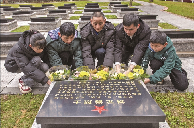 3月16日,村民林首水帶著兒孫為劉元嵩烈士掃墓