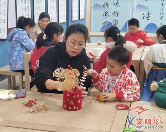 親子共同制作元宵花(翔安區(qū)未成年人心理健康輔導(dǎo)站供圖)
