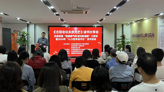 為深入學(xué)習(xí)貫徹習(xí)近平文化思想,4月18日上午,東街街道新時代文明實踐所聯(lián)合鼓樓區(qū)統(tǒng)計局、東街街道社區(qū)衛(wèi)生服務(wù)中心舉辦《古田會議永放光芒》讀書分享會——“提振精氣神 建功新福建”大家談活動暨2024年“4·23世界讀書日”活動。分享會圍繞《古田會議永放光芒》主題內(nèi)容,深入了解古田會議的歷史背景、重大事件及其精神內(nèi)涵,并結(jié)合新時代福建建設(shè),談如何傳承和發(fā)揚古田會議精神。