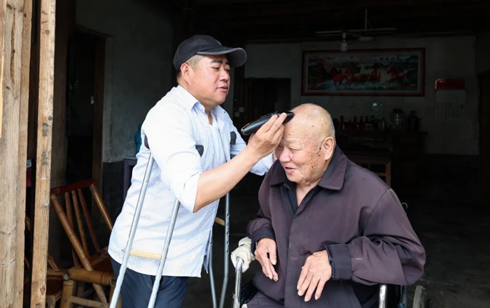 王建福幫助殘疾人理頭發(fā)