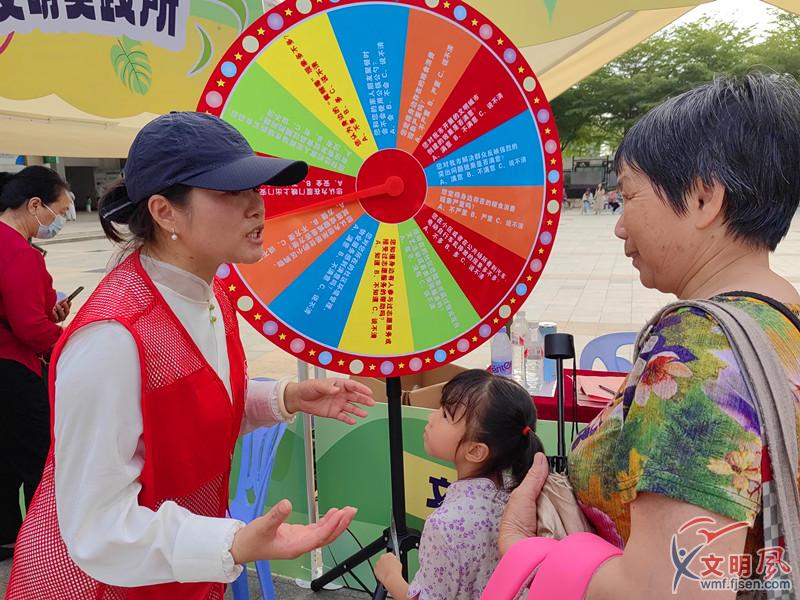 利用大轉(zhuǎn)盤與群眾進(jìn)行互動問答(夏菁 攝)