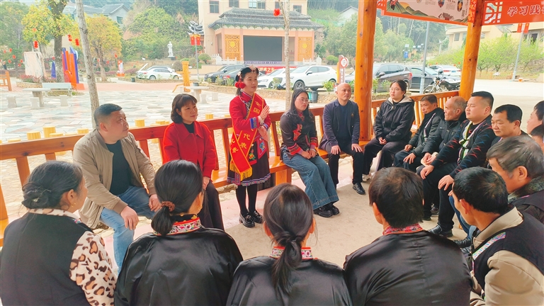 鐘團(tuán)玉用“家常畬語(yǔ)”宣講兩會(huì)精神 張劍 攝