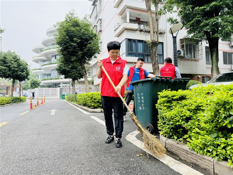 胡奇珍便是其中一名環(huán)保志愿服務(wù)者,社區(qū)工作人員都親切地稱(chēng)呼她為“珍姐”。平日里,胡奇珍發(fā)現(xiàn)社區(qū)臟亂的地方,總會(huì)隨手清理;看到居民亂丟棄垃圾,會(huì)主動(dòng)上前耐心勸導(dǎo);還會(huì)到垃圾投放點(diǎn),指導(dǎo)居民正確垃圾分類(lèi)、幫助居民破袋投放等。