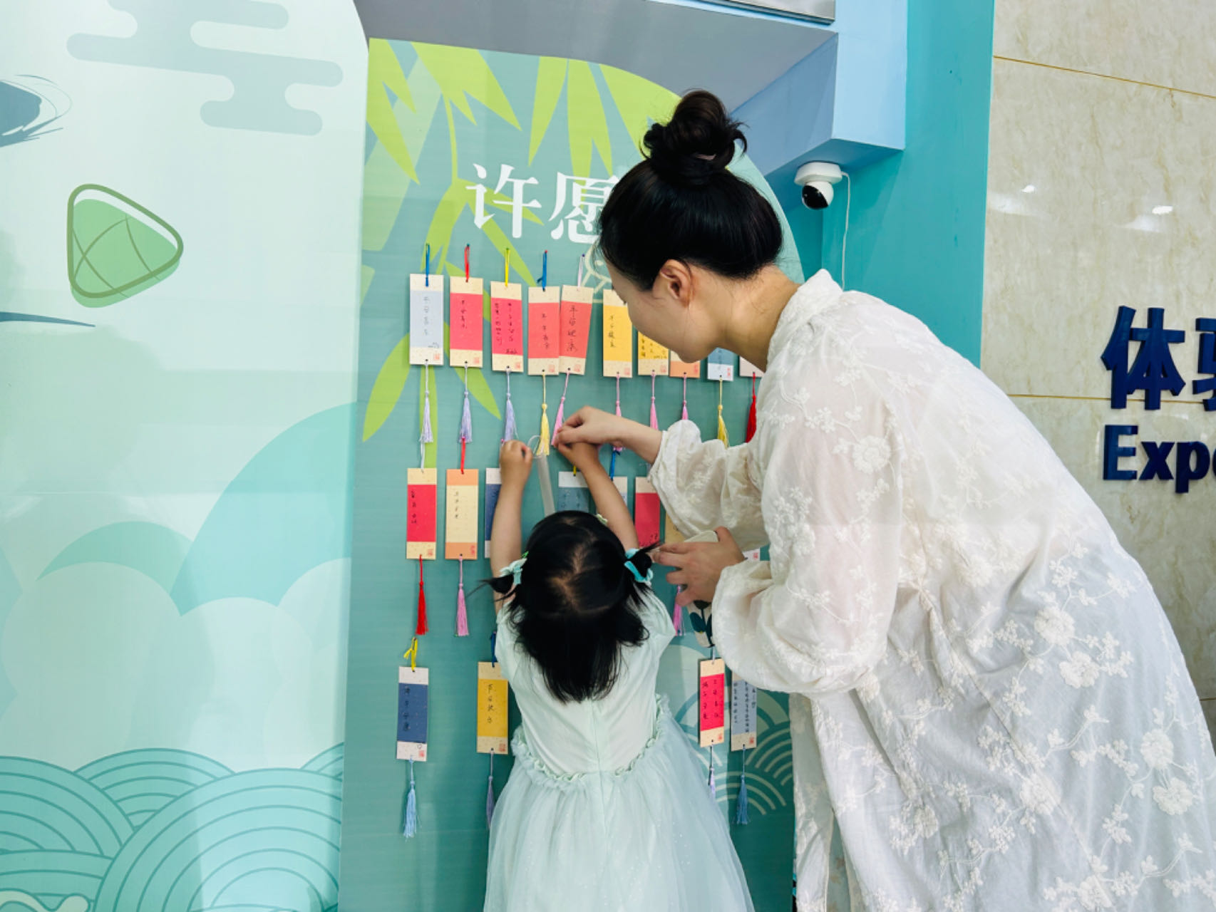 在傳統(tǒng)文化知識小課堂上,志愿者為居民們介紹端午節(jié)的由來及文化習俗?;顒又?,志愿者還邀請孩子們進行“投五毒”端午小游戲,讓孩子們加深對端午傳統(tǒng)習俗的認識,充分感受到中華傳統(tǒng)文化的魅力。