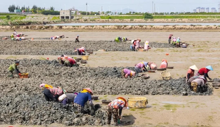 海口鎮(zhèn)斗垣村振先合作社蟶埕豐收場景。 來源:福清市融媒體中心
