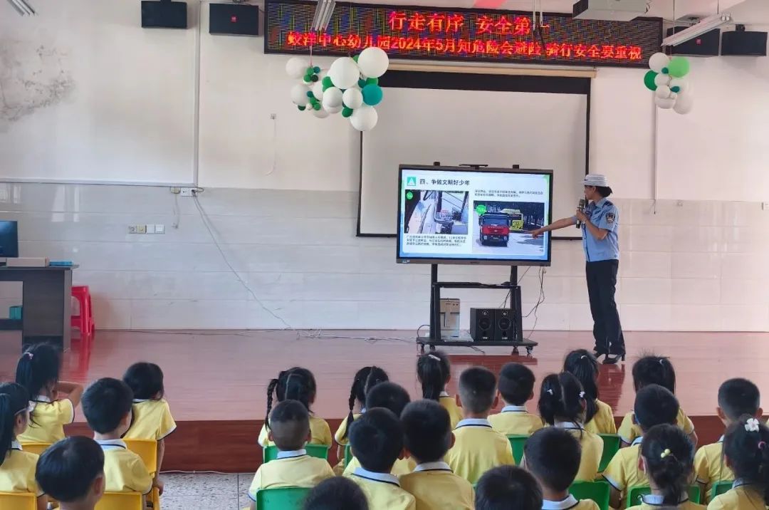 5月29日,蛟洋鎮(zhèn)“晚”安交通志愿服務(wù)隊利用“六一”兒童節(jié)契機,攜同縣公安局交警大隊古蛟中隊以及鎮(zhèn)道安辦、團委到蛟洋中心幼兒園開展“行走有序 安全第一”的交通安全伴我行活動。