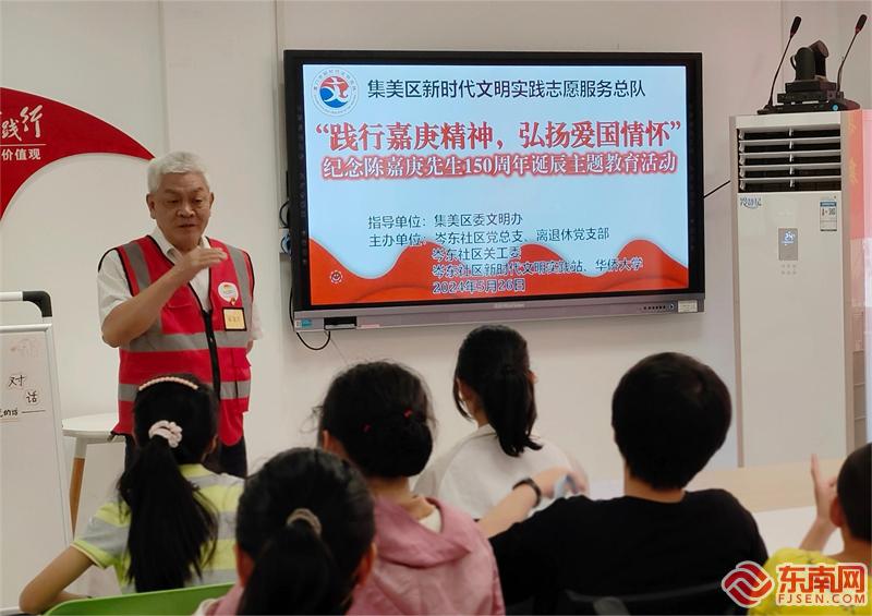 岑東社區(qū)離退休黨支部書記宋金興宣講嘉庚精神(岑東社區(qū)新時(shí)代文明實(shí)踐站供圖)
