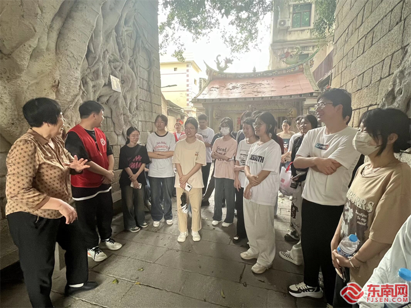 現場,社工通過PPT講述城內古城遺址及霞城文化,并帶領大家參觀霞城城隍廟,實地學習閩臺文化歷史。大學生們還走進酒文化館、霞城電影院、茶文化館及拱辰門等多處遺跡,聆聽村民講述拱辰門歷史故事,探尋本土閩臺文化,領略后溪村深厚的文化歷史底蘊,不斷汲取文化養(yǎng)分,推動鄉(xiāng)村文化振興。