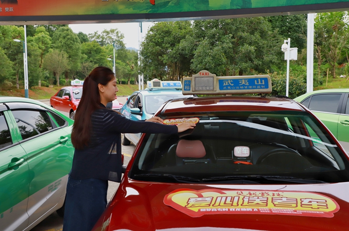 為送考車輛張貼愛(ài)心標(biāo)識(shí)