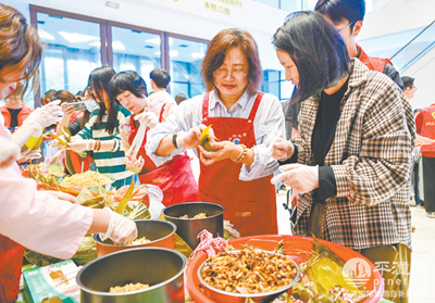 兩岸同胞一起包粽子。