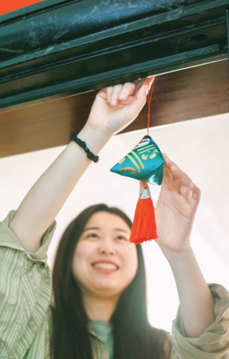 “小時候,每到端午節(jié),外婆總會在門口掛艾草、菖蒲。”陳佳楨回憶道,“端午當(dāng)天,家里的長輩還會將雄黃和白酒混合,裝進噴霧器里四處噴灑,用來驅(qū)蟲,并在我們額頭上點上一些雄黃,寓意驅(qū)除毒害,保佑我們平安健康?!?/p>