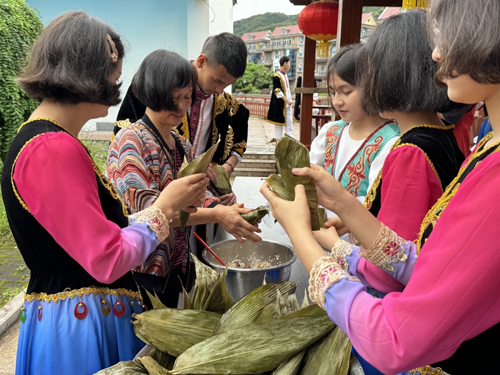 長樂華僑中學新疆班學生學習包粽子(長樂區(qū)委文明辦供圖)